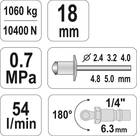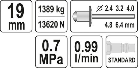 Kniediklis pneumatinis | 4 - 6,4 mm (YT-36177)