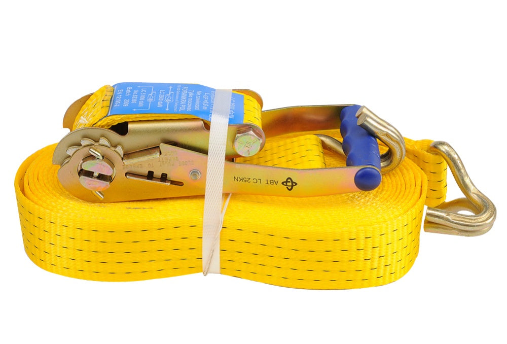 High quality two-piece 50 mm wide and 12 m long tape to hold your luggage. Solid workmanship assures good assembly and quiet driving. The belt has a gear that allows for proper tensioning and locking. Ability to attach 2500 daN.