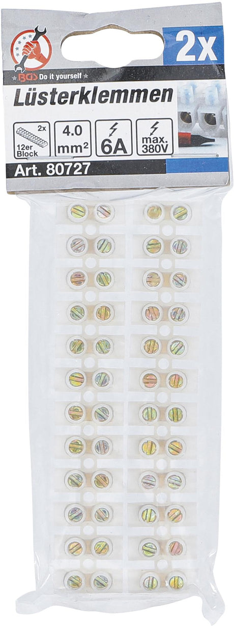 Laidų tvirtinimo gnybtai | 4,0 mm² | 6 amperų | 2 vnt. | 12 vnt. blokelis (80727)