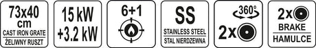 Lauko kepsninė / grilis | dujos | 6 + 1 | nerūdijantis plienas | 18,2 kW (99653)