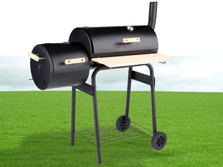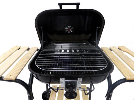Lauko kepsninė / grilis | su dangčiu ir grotelėmis | medinės lentynos (99581)
