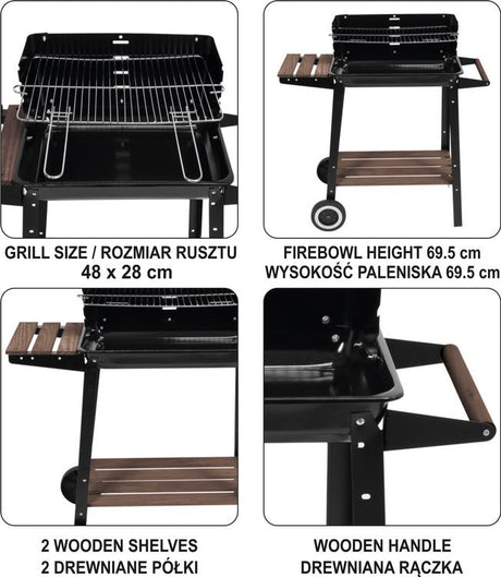 Lauko kepsninė / grilis | medinė lentyna | grotelės 48X28 cm (99585)