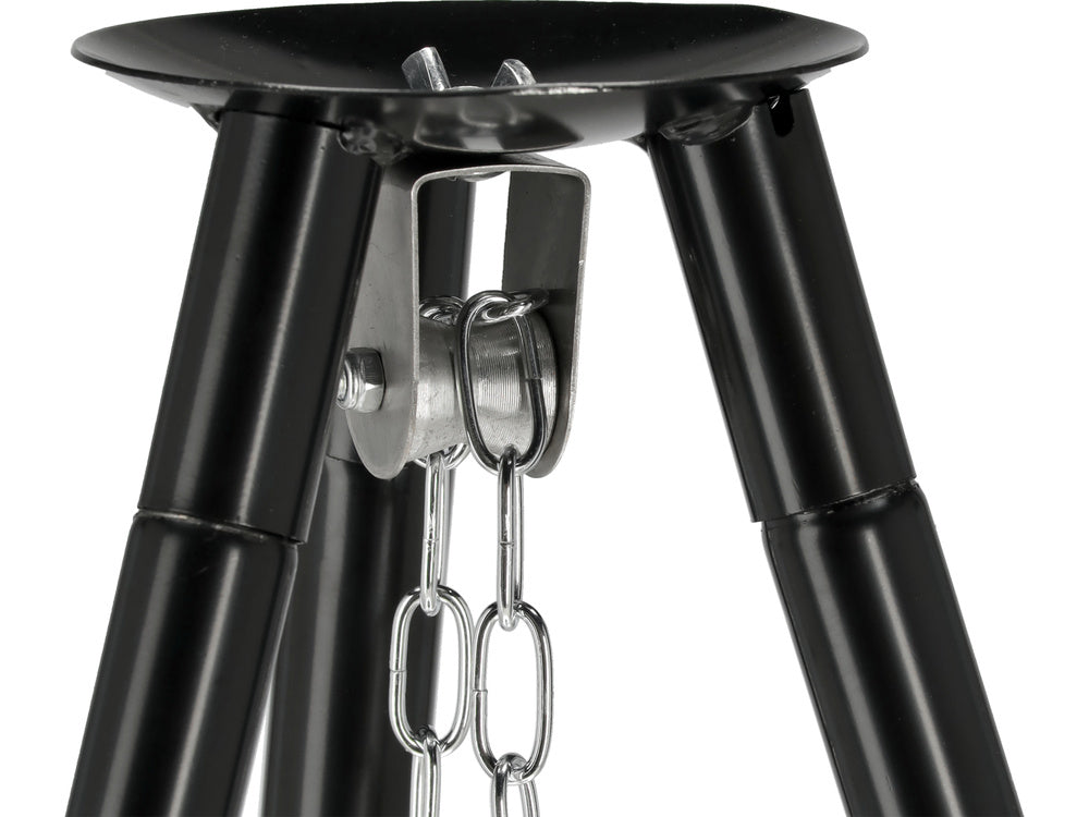 the chrome grate is lightweight, durable, easy to clean and ensures long use. Additionally, the grate has high edges that prevent food from falling. Possibility of hanging the grate in 2 ways - to an adjustable chain or to a tripod