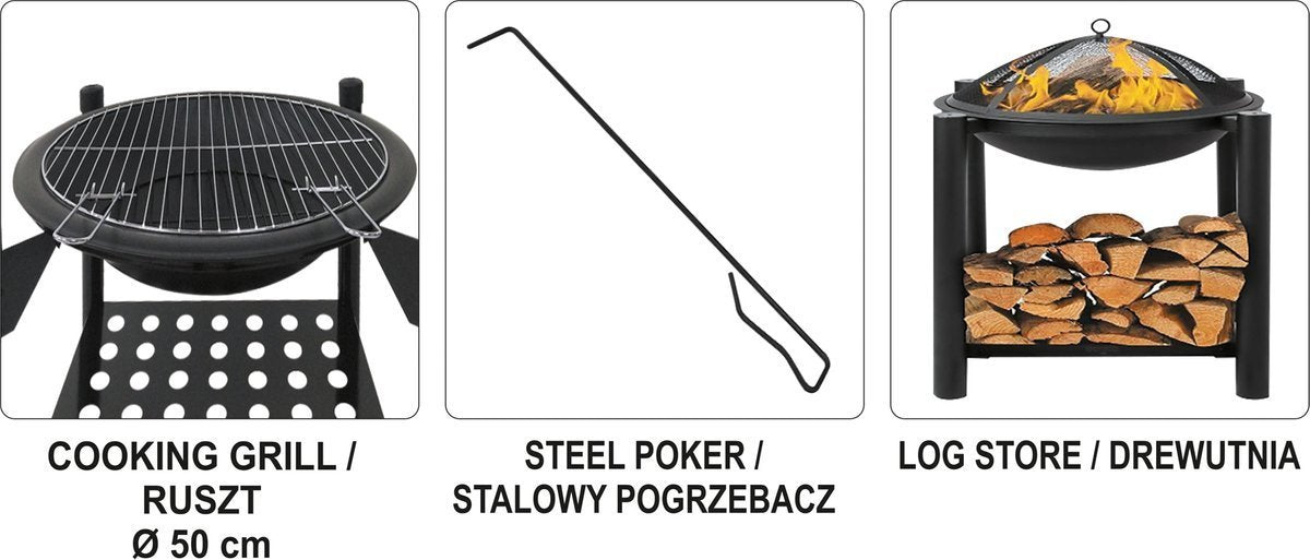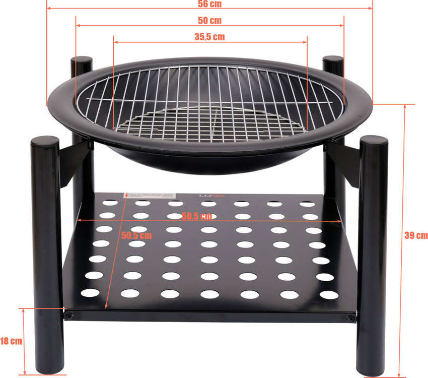grate height 39 cm - convenience in grilling, large distance from the ground, thanks to which we avoid burning it (e.g. grass)