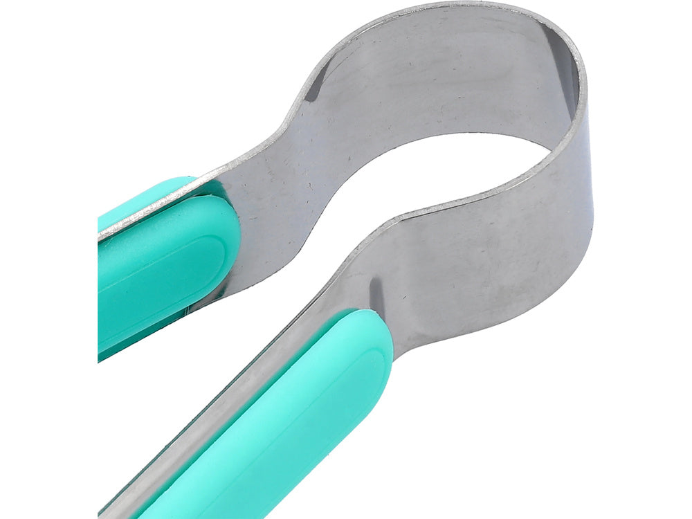 Catering tongs designed for use with fat-free fryers. Plastic handle protection protects against burning your hands. Turquoise colour.