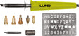 Į gaminio komplektaciją įeina stovas, 4g alavo, 6vnt. keičiamų varinių antgalių ir trafaretas.