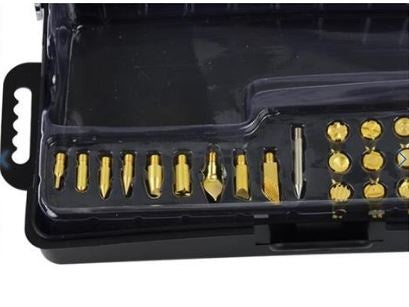 30W wood and leather burner with a set of 22 different tips. Ideally suited for firing decorative patterns, drawings in wood, leather, cork, etc.
