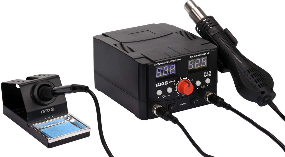 Kombinuota litavimo stotelė YATO YT-82458 - tai multifunkcinis, kokybiškas ir efektyvus PRO klasės prietaisas, sujungiantis įprastų kaitinimo ir litavimo stotelių funkcijas. Stotelė aptarnauja 908D tipo lituoklį su keraminiu kaitinimo elementu (darbinė įtampa 24V), kuriam tinkami keičiami 900M serijos antgaliai ir kaitinimo feną su keraminiu kaitinimo elementu, kuris aprūpintas aukščiausios klasės bekontakčiu elektroniškai komutuojamu (brushless) varikliu.