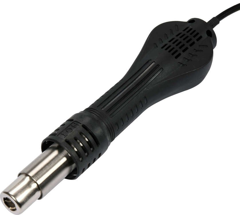 Įrenginys komplektuojamas su tvirtu metaliniu stovu lituokliui ir 4vnt. oro srauto antgalių: 4.4mm | 8mm | 10mm | 12mm