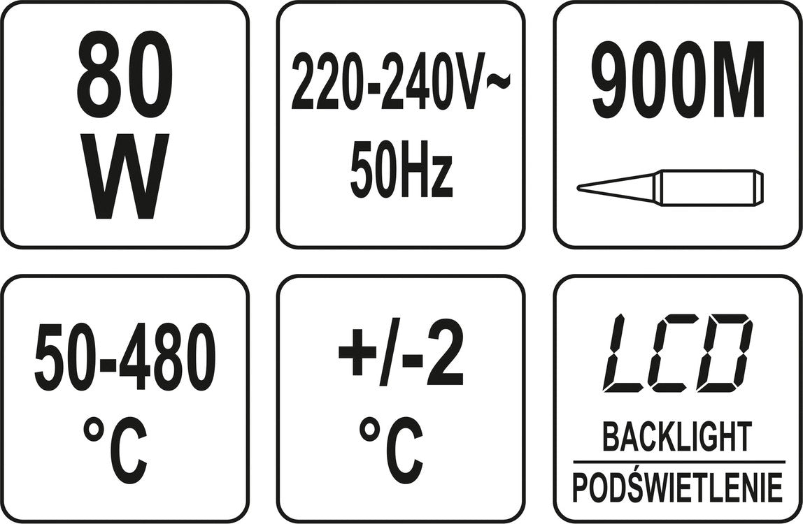 Lituoklis | 900 mm antgalis | LCD / temperatūros reguliavimas | 50-480C | 80W (YT-82701) yra užsakomoji prekė, ją išsiųsime per 3-4 savaites.