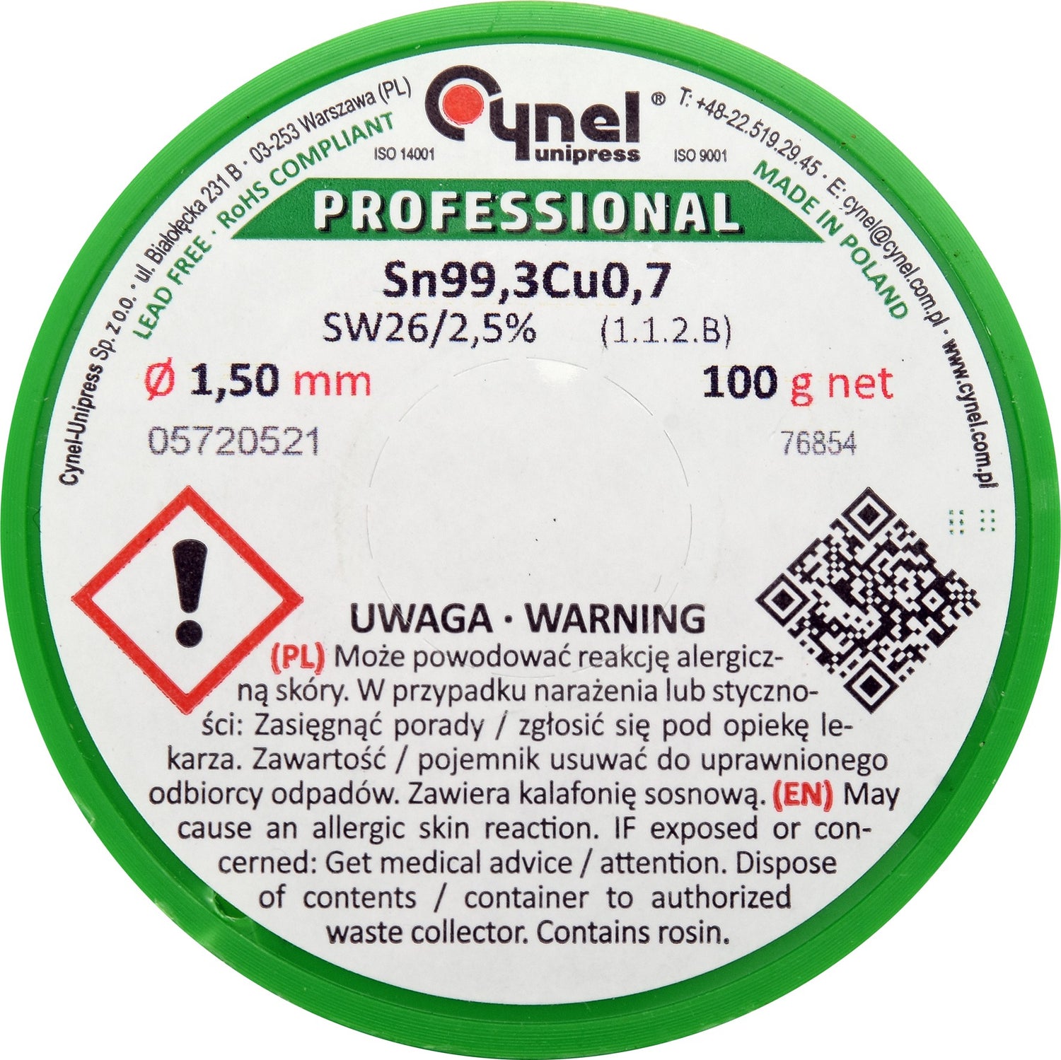 Professional lead-free binder with a flux in the core, in accordance with PN EN 29453: 2000.