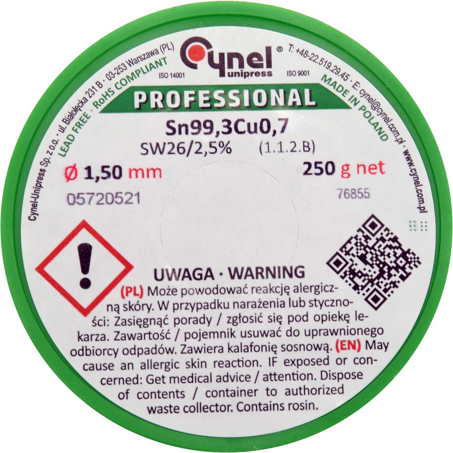 Professional lead-free binder with a flux in the core, in accordance with PN EN 29453: 2000.
