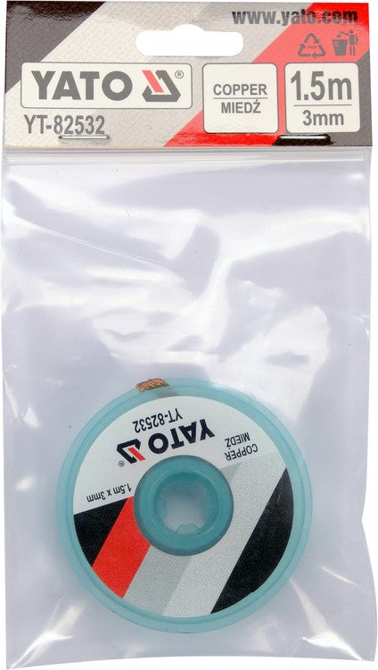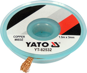 YT-82532 desoldering tape in the form of a copper tape composed of many individual threads braided in the form of a wick. It is used to remove excess tin or to clean traces of solder residues.