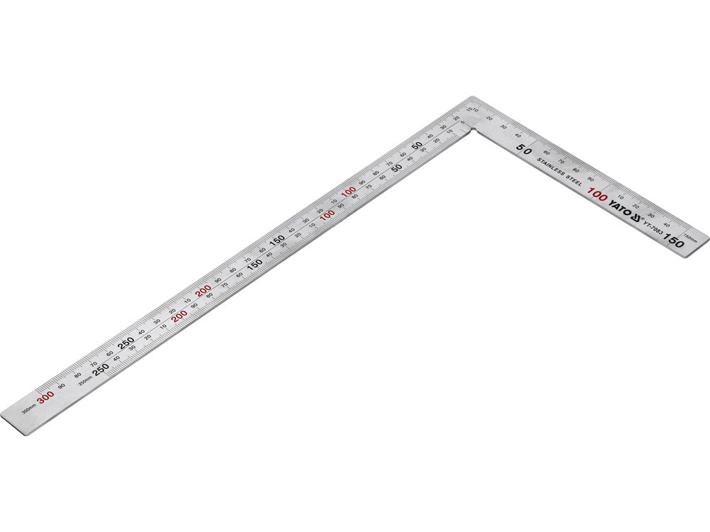Flat stainless steel corner scissors. Main dimensions 300 x 150 mm. Permanent millimeter scale.