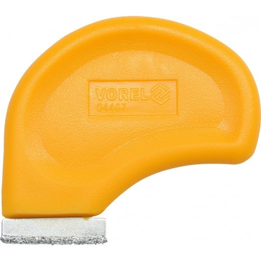 Efficient, comfortable to use scraper for tiling work. Body made of plastic, the working part is a steel plate covered with hard tungsten.
