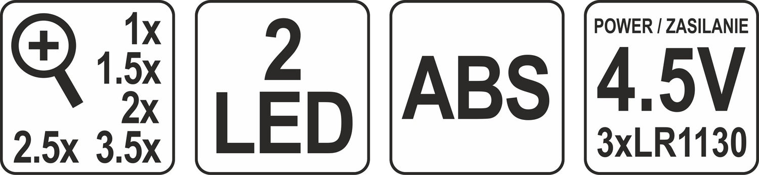 Binoklinė lupa su apšvietimu | dedama ant galvos | 5 nustatymai X1/X1,5/X2/X2,5X/3,5 (YT-73842)