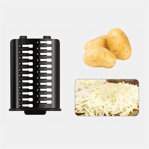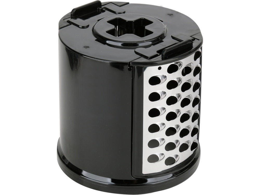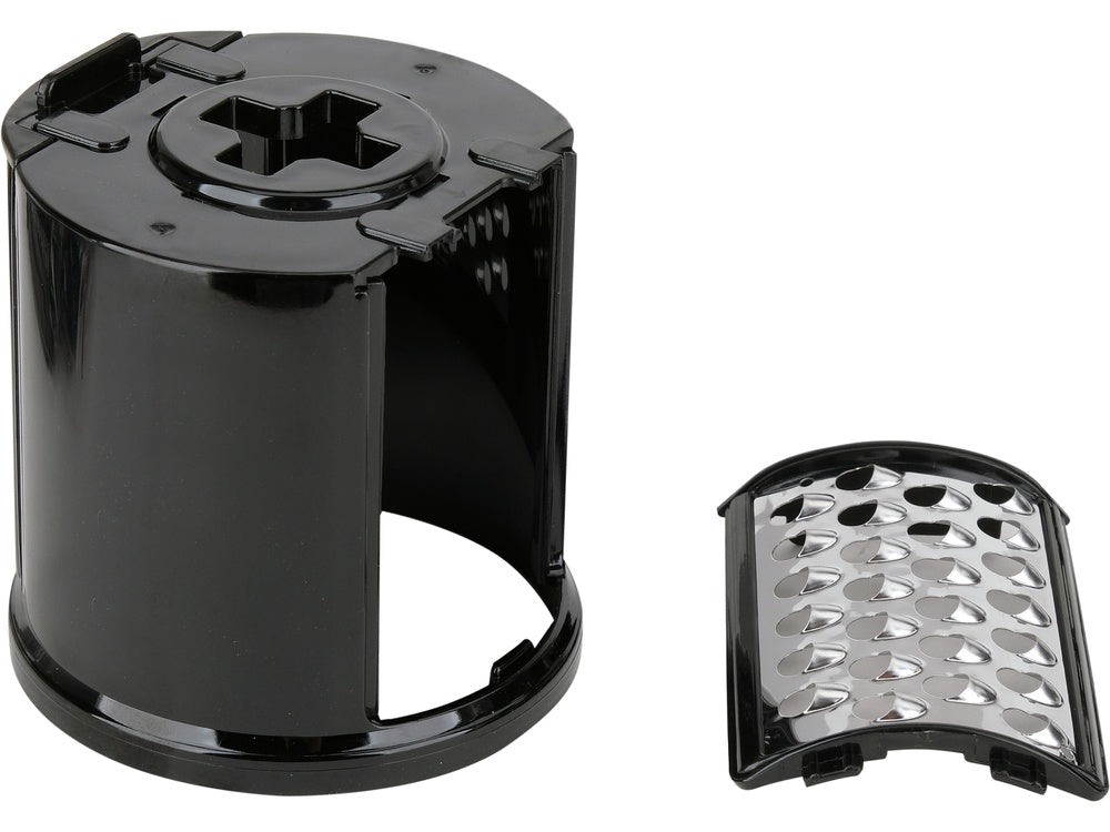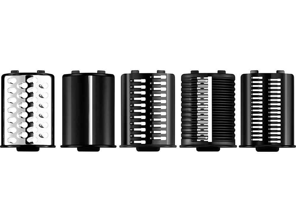 durable drum with 5 interchangeable stainless steel blades precisely slices vegetables into slices or shavings of various sizes