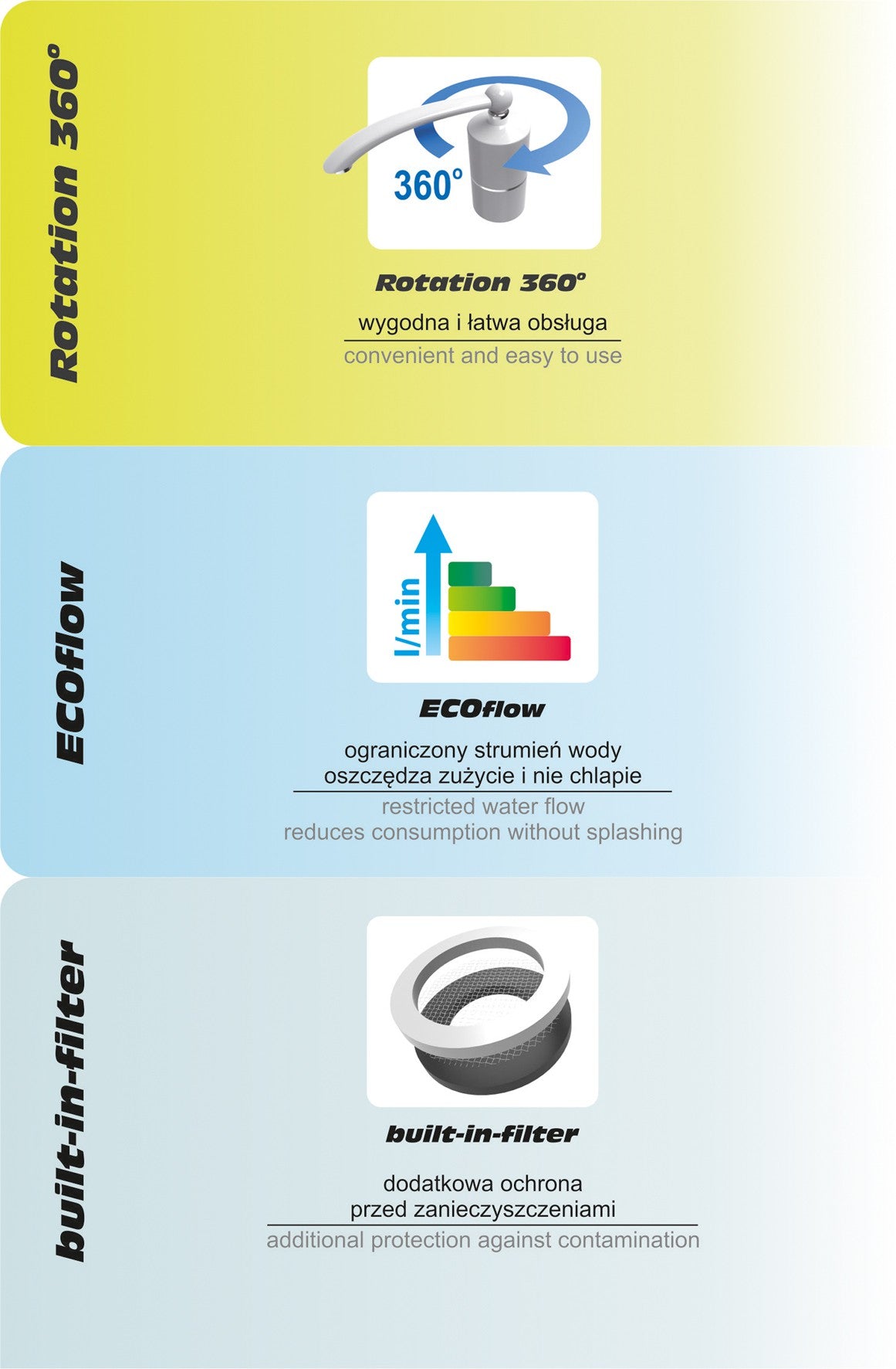 Thanks to a rotating screed with a length of 10 cm, it can easily handle a standard washbasin.