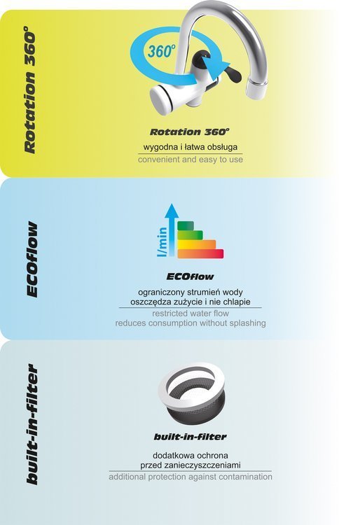 convenient regulation of the water temperature with the handle of the heater
