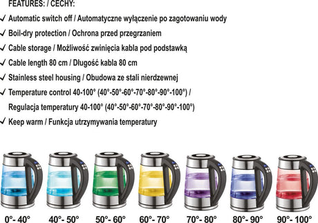 Virdulys stiklinis | Led | temperatūros kontrolė | 1.7 l (68173)