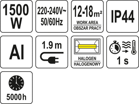 Infraraudonųjų spindulių šildytuvas | 1500W | LOW GLARE (YT-99536)