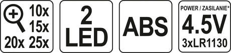 Binoklinės lupos su apšvietimu | dedamos ant galvos | 5 nustatymai X10/X15/X20/X25 (YT-73840)