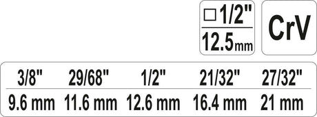 Raktas pakopinis | 9,6 / 11,6 / 12,6 / 16,4 / 21 mm (YT-03316)