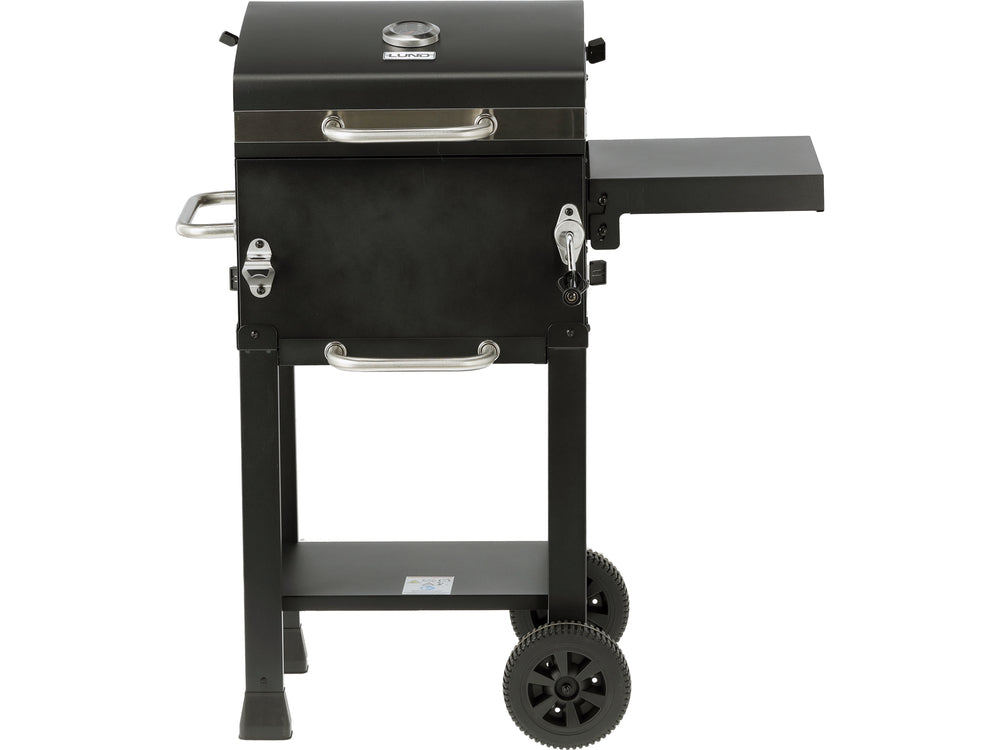 Portability - two large wheels and a side transport handle allow for easy repositioning of the grill within the terrace, garden, or plot.