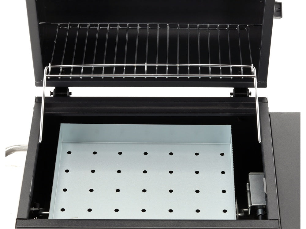 Functional grilling surface - a steel, enameled grate measuring 39.5 29.5 cm and 3 mm thick ensures even heating and stable temperature maintenance during grilling. An additional warming rack with a surface area of 38 20 cm allows for placing ready dishes or gently keeping them warm without direct contact with the heat.
