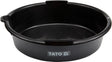 Bowl for pouring used oil or other consumables. Made of polypropylene, has carrying handles and contoured place to pour. Dimensions: diameter 300 mm, height 90 mm, capacity about 7 l.