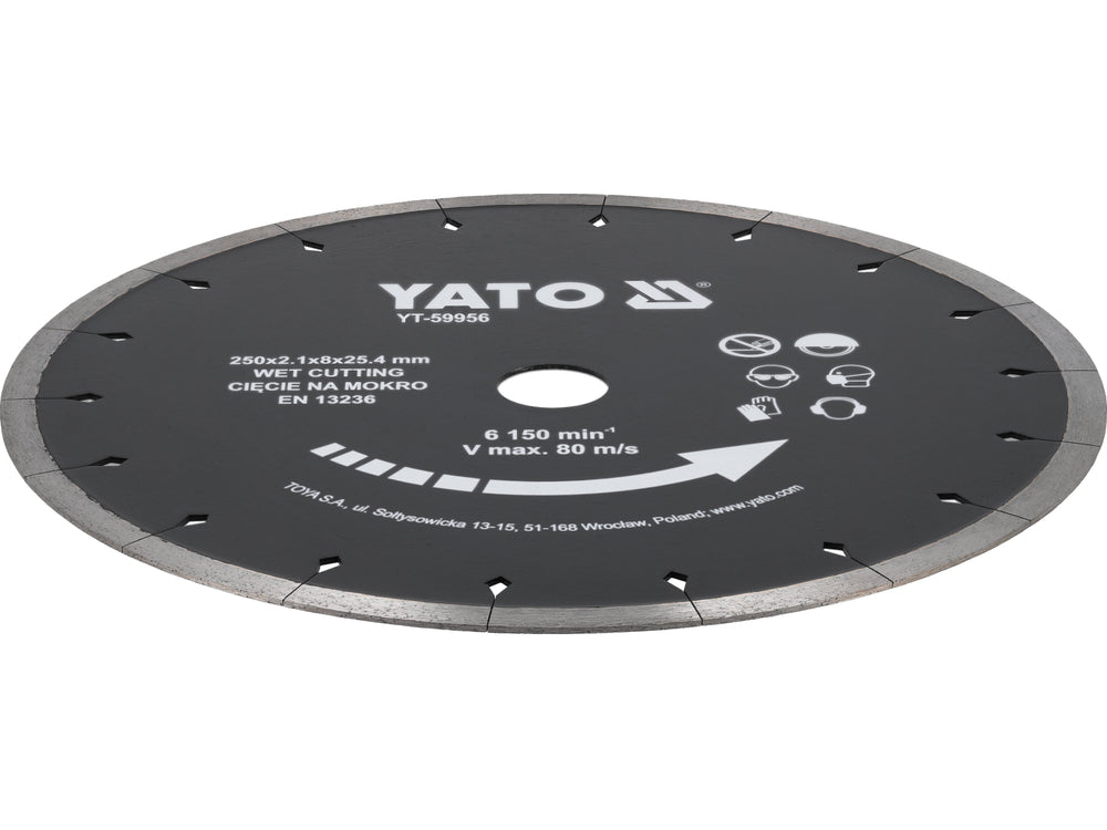Deimantinis drėgno pjovimo diskas | keramikai | 250 mm (YT-59956) yra užsakomoji prekė, ją išsiųsime per 3-4 savaites.