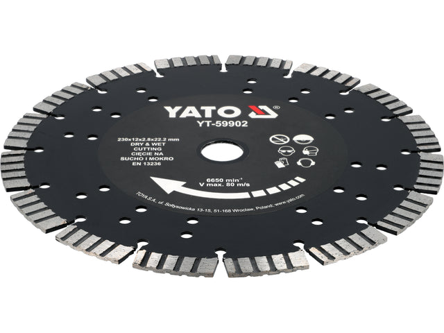 Deimantinis pjovimo diskas gelžbetoniui | 230X12X22.23mm (YT-59902) yra užsakomoji prekė, ją išsiųsime per 3-4 savaites.