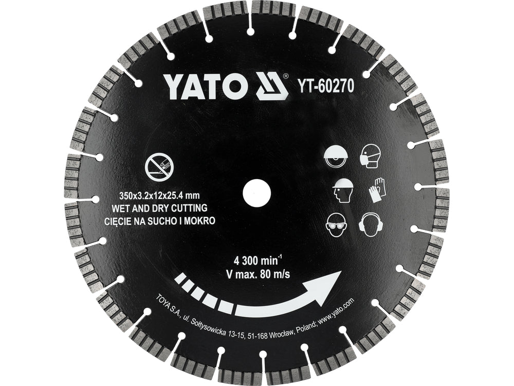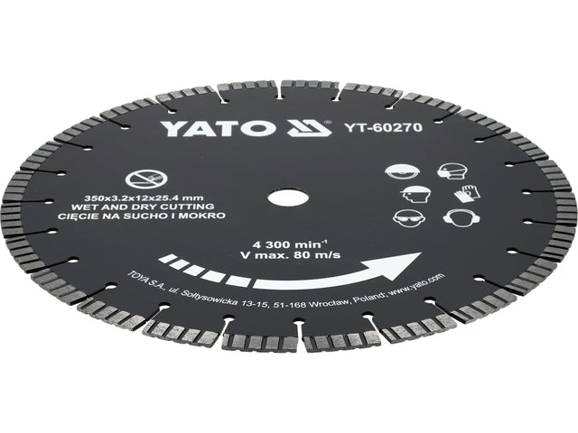 Deimantinis pjovimo diskas gelžbetoniui, akmeniui, granitui | 350mm (YT-60270) yra užsakomoji prekė, ją išsiųsime per 3-4 savaites.