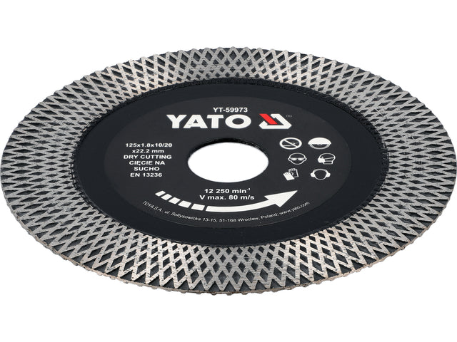 Diamond blade for precise dry cutting of ceramics and stoneware.