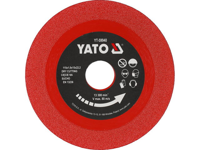 Deimantinis pjovimo diskas | stiklas, plytelės | 115 mm X 1.0 X 22,23 mm (YT-59940)