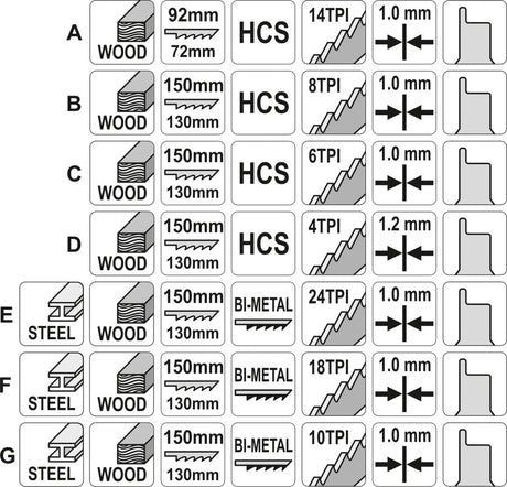 Pjūkliukai stumdomam siaurapjūkliui | medžiui | HCS 150 mm 8TPI 2 vnt. (YT-33923)