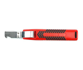 Universal wire cutter. Cuts wires and strips electrical insulation. Straight blade for cutting wires, arched blade for wire stripping and clamp and blade for searing outer insulation. Adjustable cutting depth. Ergonomic handle with non-slip grip and arched and straight blade protective cover. Speeds work up in electrical service points.