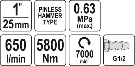Pneumatinis veržliasukis | 25 mm (1") | 5800 Nm (YT-09620)