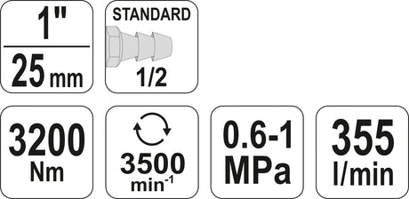 Pneumatinis veržliasukis | 25 mm (1") | 3200 Nm (YT-09615)