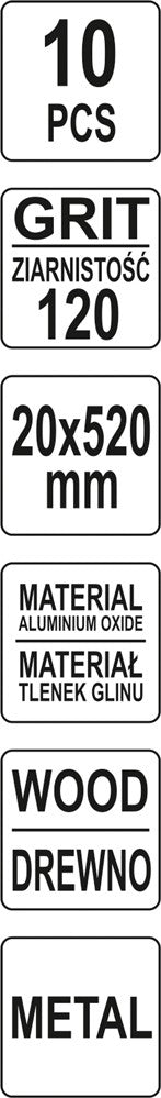 Juosta pneumatiniam šlifuokliui | P120 / 20X520 mm | 10 vnt. (YT-09750)