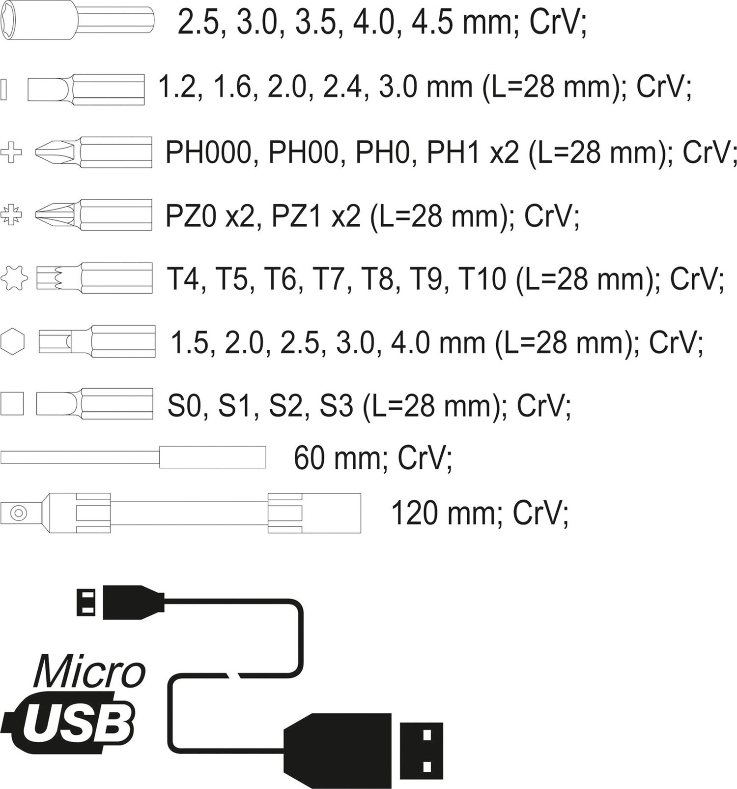 Phillips: PH000, PH00, PH0, 2 x PH1