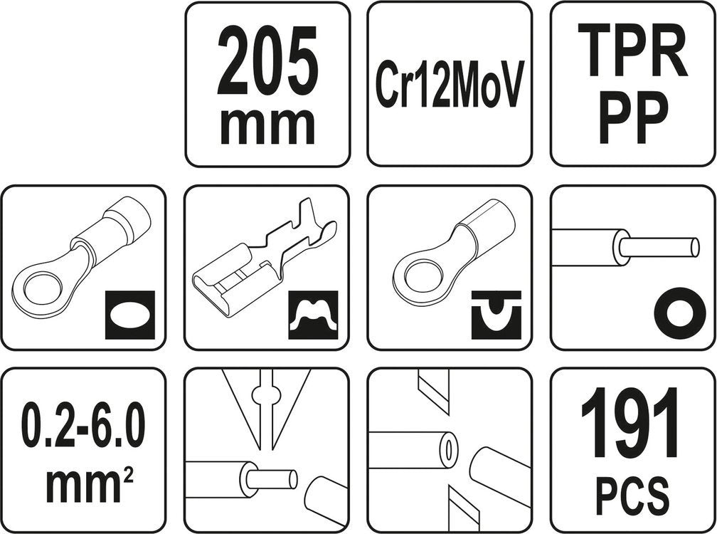 Pliers YT-23133 application table:
