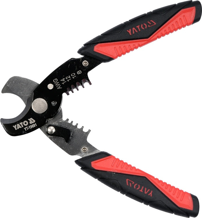 YT-19691 pliers made of high-quality forged steel with two-component handle covers. Designed for cutting wires and stripping insulation. Can be locked in the folded position, so they do not take up much space when stored.