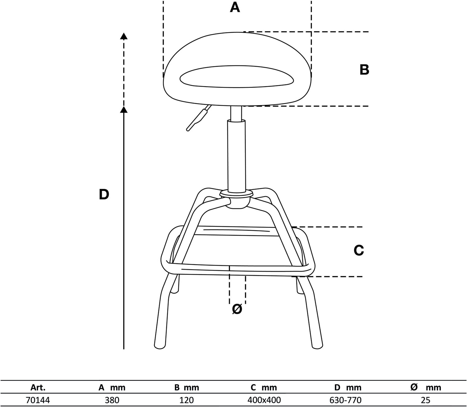 Autoserviso baro kėdė | reguliuojamas aukštis | 630 - 770 mm (70144) yra užsakomoji prekė, ją išsiųsime per 3-4 savaites.