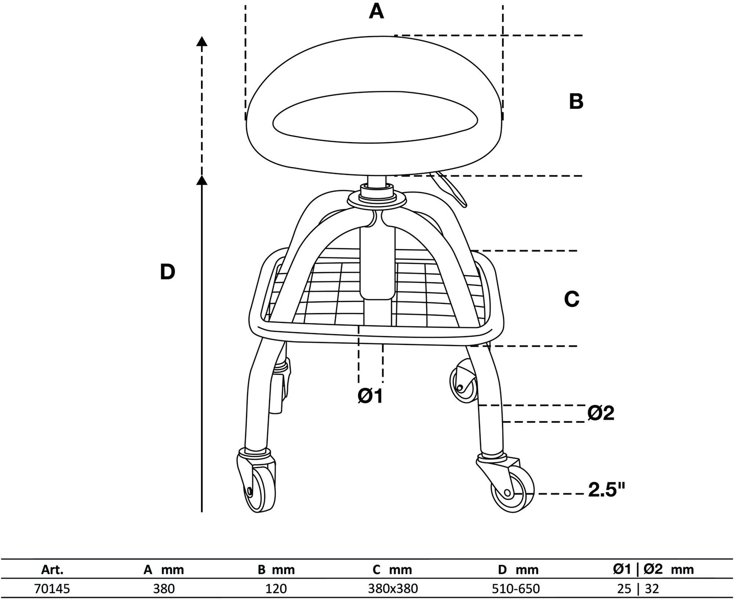 Autoserviso baro kėdė | su 4 ratukais | reguliuojamas aukštis | 540 - 680 mm (70145)