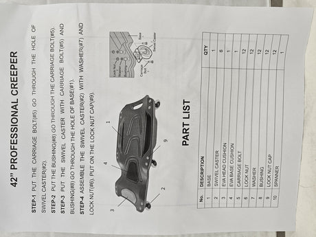 Gultas ant ratukų | profi | 42"| HDPE 100% | su įrankių dėklu (PC42T)