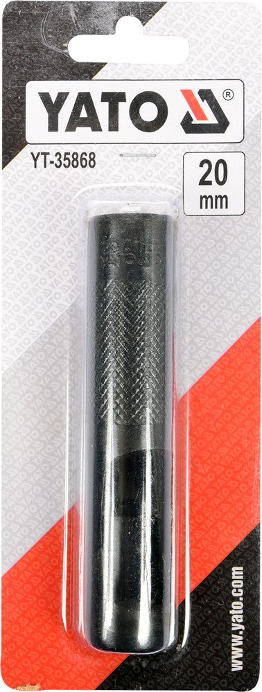 SIZE: 20MM; SHAPE: TUBULAR; MATERIAL: HARDENED CARBON STEEL #45; ANTI-SLIP KNURLED CROSS; WITH A HOLE TO REMOVE CUT ELEMENTS; WORKING PART SANDED AND POLISHED; SURFACE FINISHING: BLACK OXIDIZED