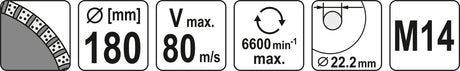 Deimantinis šlifavimo diskas | lėkštės tipo | M14x180 mm (YT-60323)