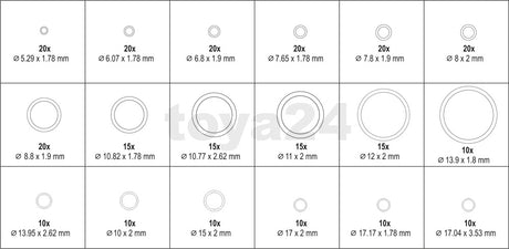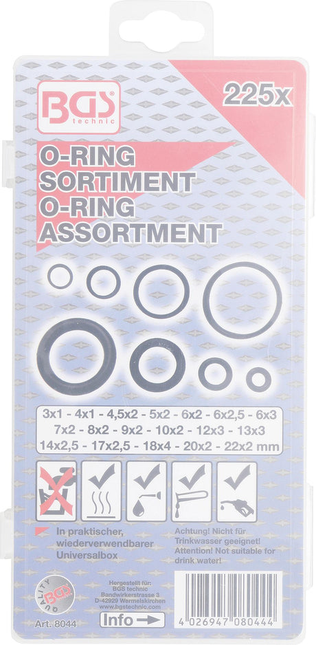 Guminių tarpinių / manžetų asortimentas | Acrylic (NBR) | Ø 3 - 22 mm | 225 vnt. (8044)
