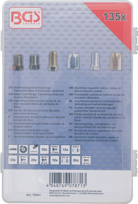 Stabdžių vamzdžių jungiamųjų detalių, jungiamųjų veržlių ir varžtų asortimentas | 135 vnt. (70341)
